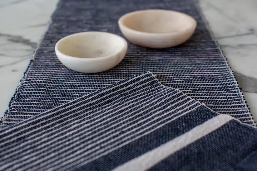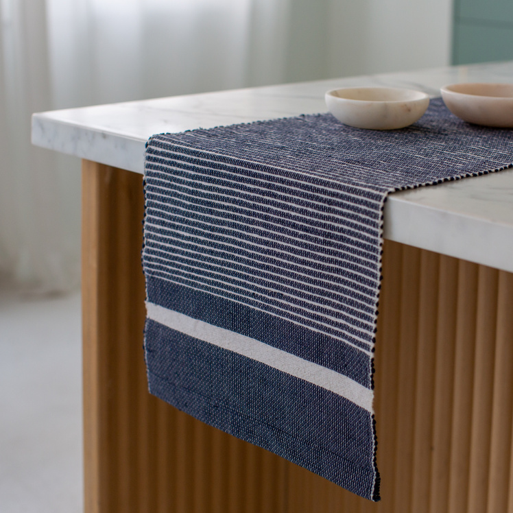 Bordløper håndvevd av resirkulert bomull. Bomullstråden er spunnet av bomullsrester som samles inn fra fabrikker i hele Etiopia. Vi elsker at dette er ett null-avfalls produkt (og bare så du vet det, så vever Sabahar også alle restene sine til tepper eller deres berømte Fasika-veske). Disse solide bordløperene vil gi deg mye glede og vare mange år fremover.