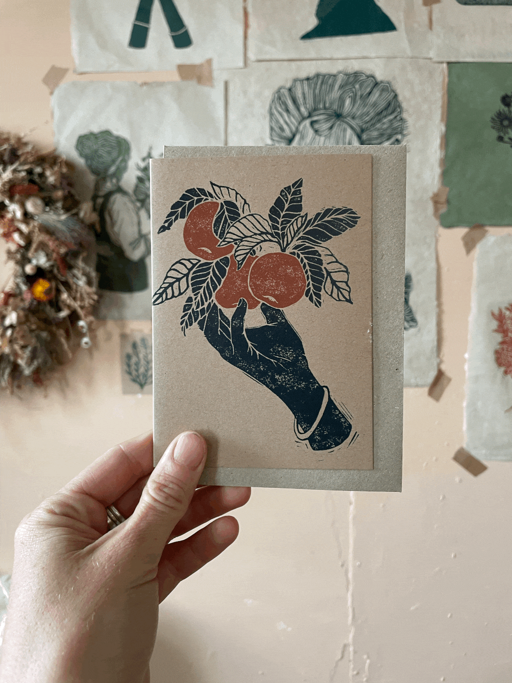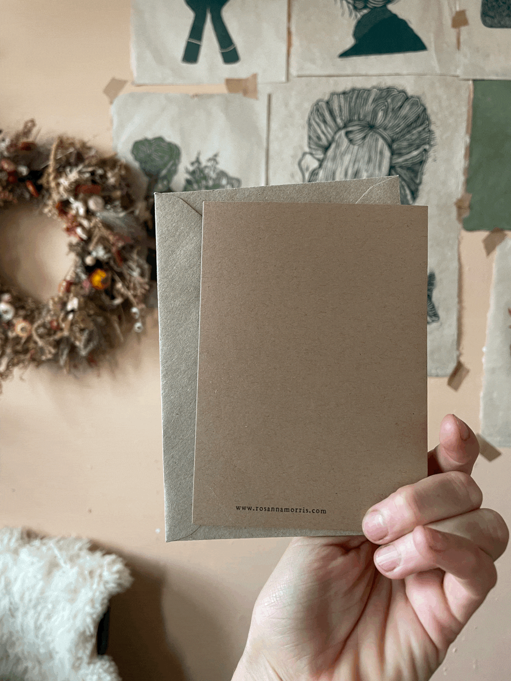 A6 kraftkort med brun konvolutt i kraftpapir.