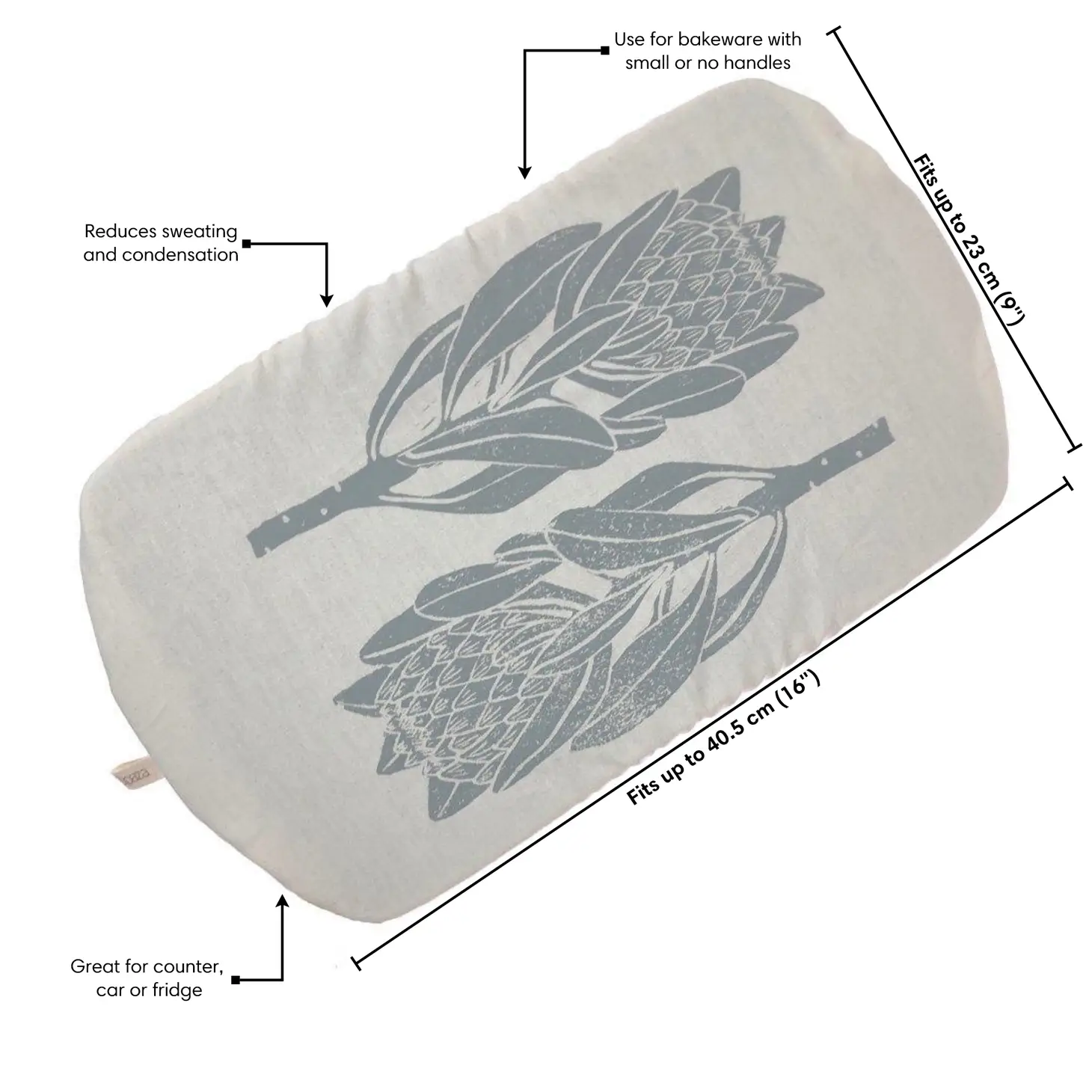 Håndlagde bolletrekk fra spaZa. Bruk på bordet, i kjøleskapet eller mens du transporterer en bakt godbit eller gryte i en rektangulær form med små eller ingen håndtak.