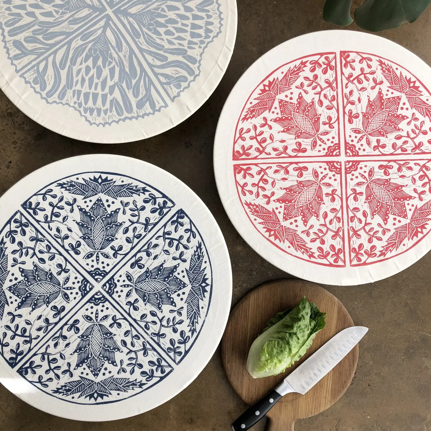 Håndlaget bomullstrekk til skåler fra spaZa. Madiba xxl passer til store salatboller, bakeboller og ulike skåler med litt unormale former. Trykket er inspirert av Nelson Mandela sine skjorter.