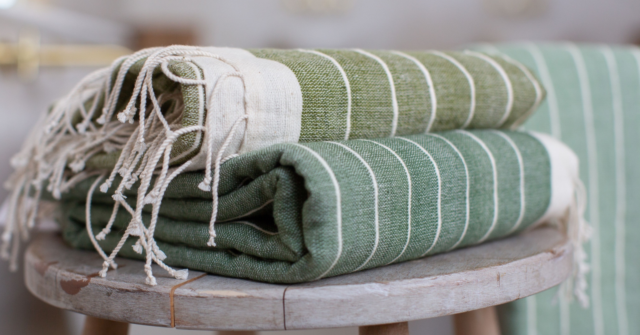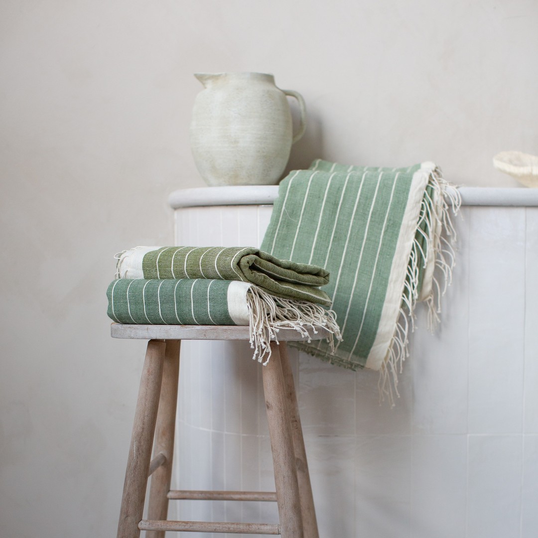 Håndvevd badehåndkle fra Sabahar, kan også brukes som sarong, lite teppe eller duk.