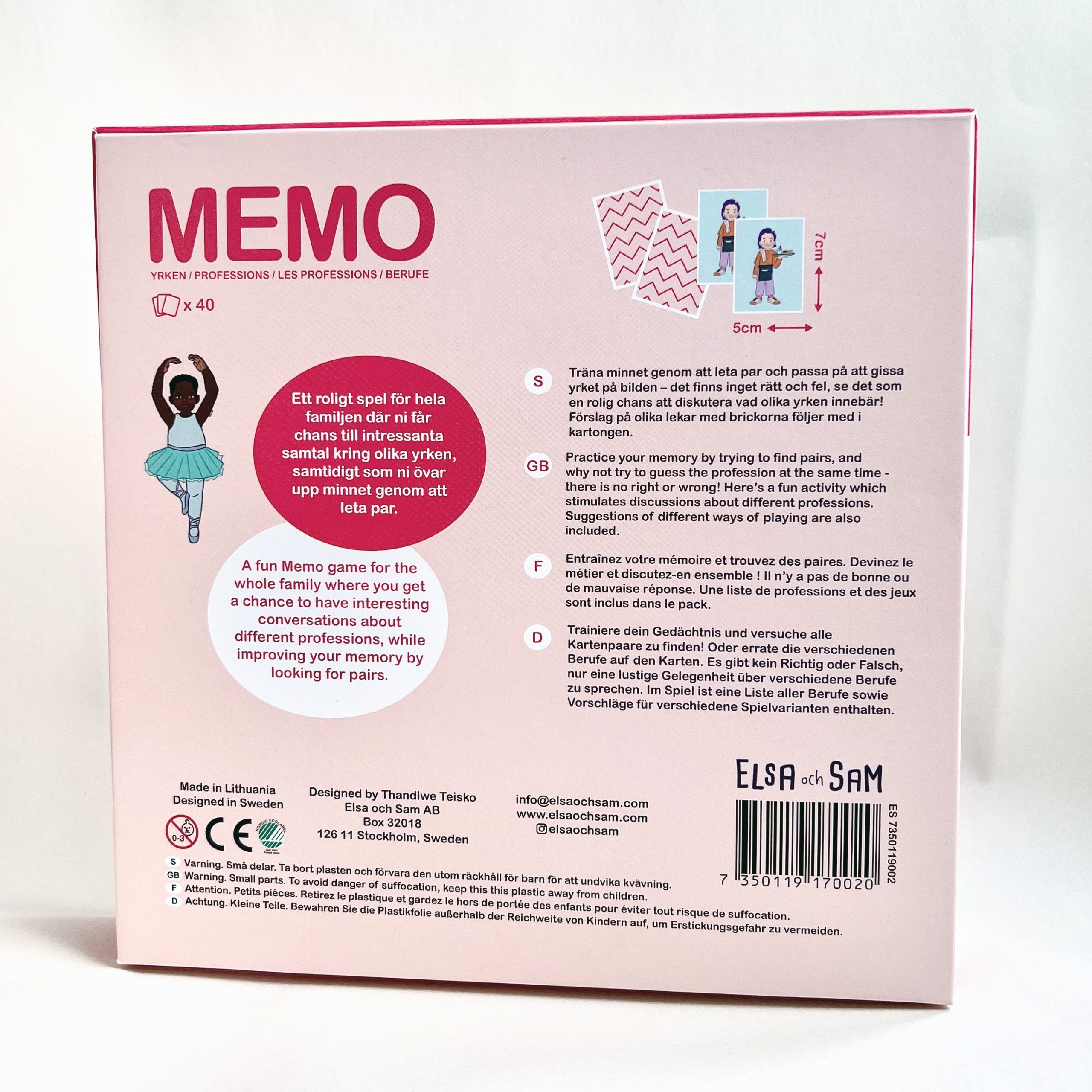 En liste over yrker og forslag til forskjellige spill med brikkene er inkludert i esken, slik at du kan ha det gøy med spillet lenge.