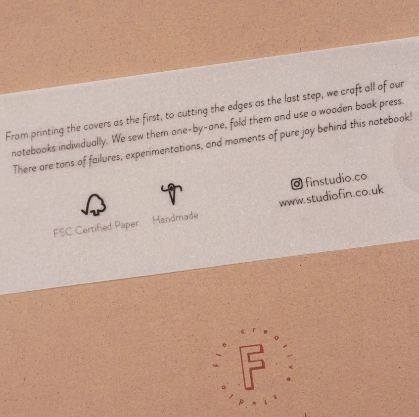 Fin lager alle notatbøkene sine individuelt i Hertford, England. Fra det første trinnet med å trykke omslaget til det siste trinnet hvor de skjærer til kantene. Notatbøkene sys én etter én, brettes og legges i en bokpresse av tre. Det ligger mange feil, eksperimenter og øyeblikk av ren glede bak disse notatbøkene!