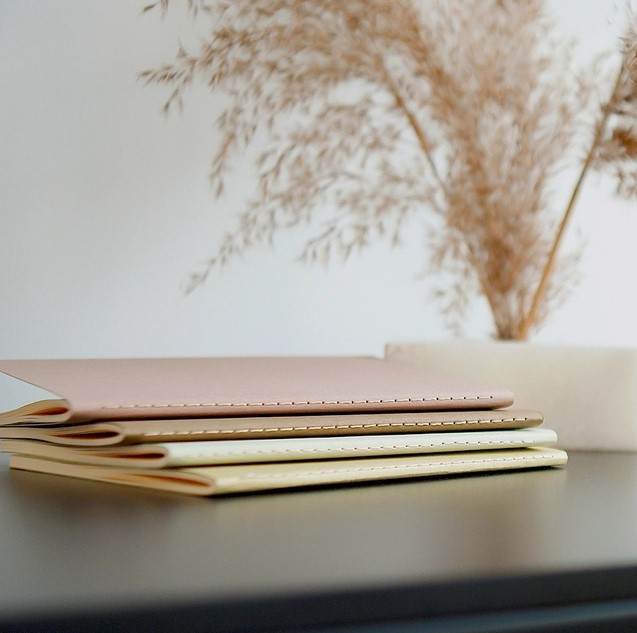 Notatbok med nøytrale farger inspirert av naturen, inneholder 60 blanke sider