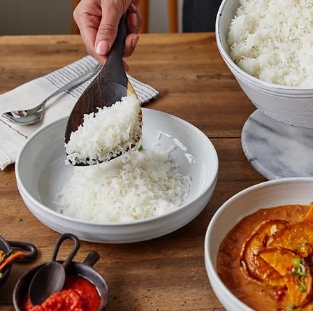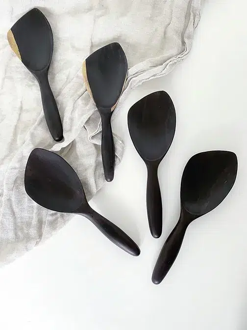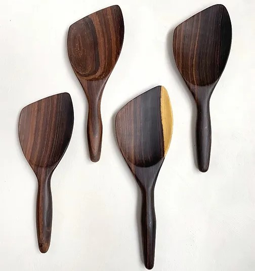 Inspirert av den japanske «shamoji», en stor flat skje som tradisjonelt brukes til å servere ris, har Qäsa Qäsa laget sin egen versjon med et stort hode som effektivt rører i risen uten å mose den.