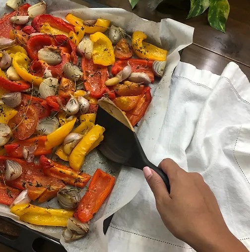 Det lett buede håndtaket gjør det enkelt å gripe tak i skjeen, og den er svært taktil. Vi bruker dem også på til å snu grillede grønnsaker i stekebrettet. Det er et herlig redskap som er allsidig å bruke og ta med seg rett til serveringsbordet.
