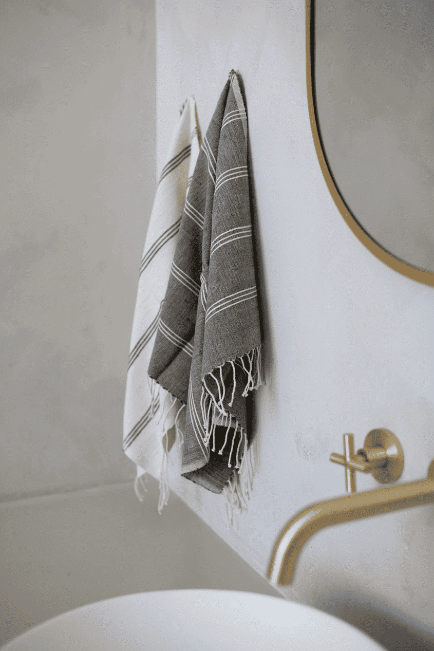 Håndvevd håndhåndkle fra Sabahar, vevd med den nydeligste etiopiske bomull. Håndkledet egner seg både som baderoms og kjøkkenhåndkle.