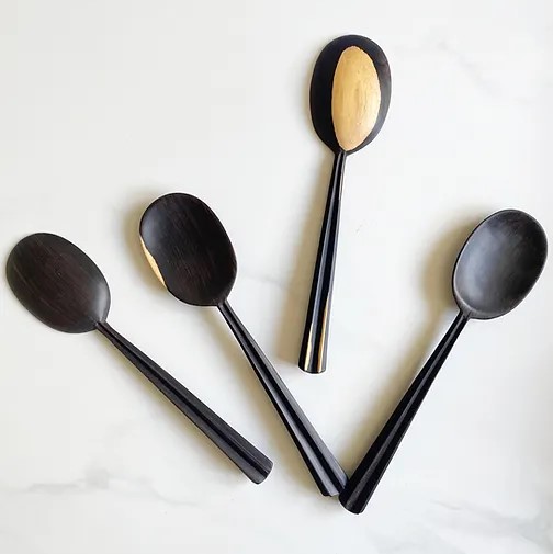 Nydelige håndskåret serveringsskje, en harmonisk blanding av moderne design og tradisjonelt håndverk.
