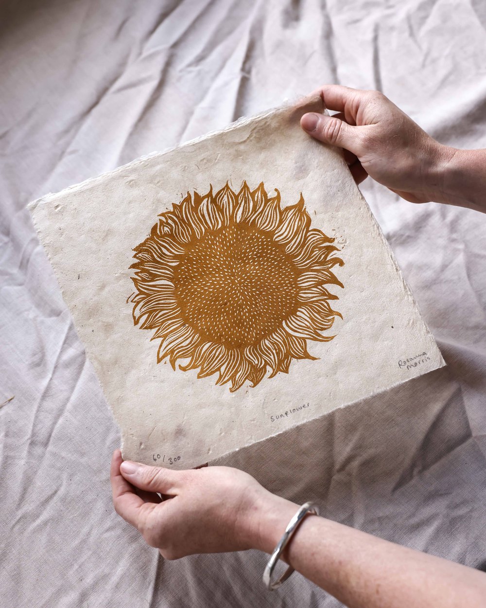 Rosanna Morris er grafiker og illustratør med base i det sørvestlige England. Hun arbeider hovedsakelig med relieftrykk og skaper håndskårne originaltrykk som utforsker matsuverenitet, naturlig biologisk mangfold og menneskets tilknytning til jorda.