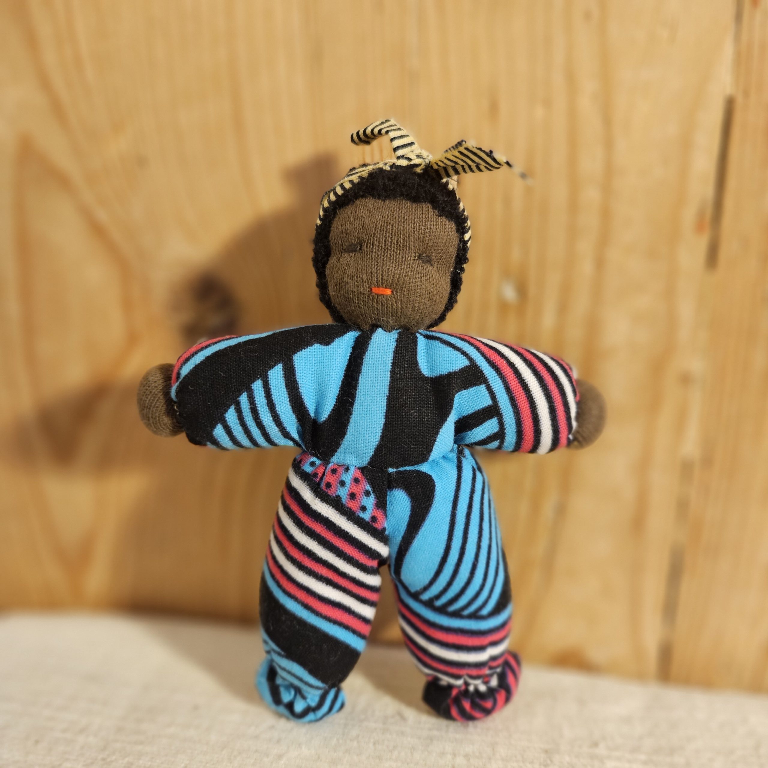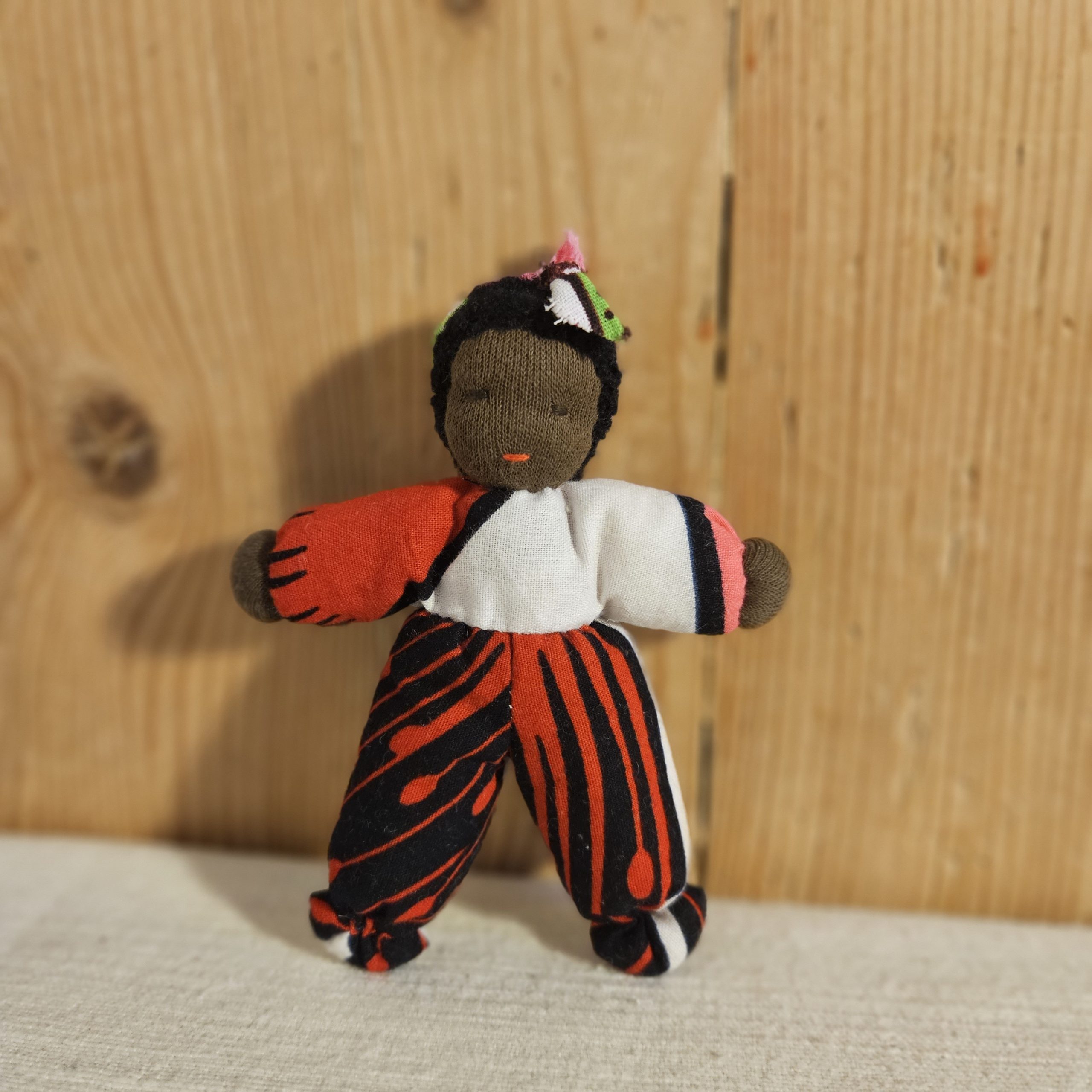 Dukke med drakt i vest-afrikansk stoff. En liten lekekamerat og bestevenn for livet!