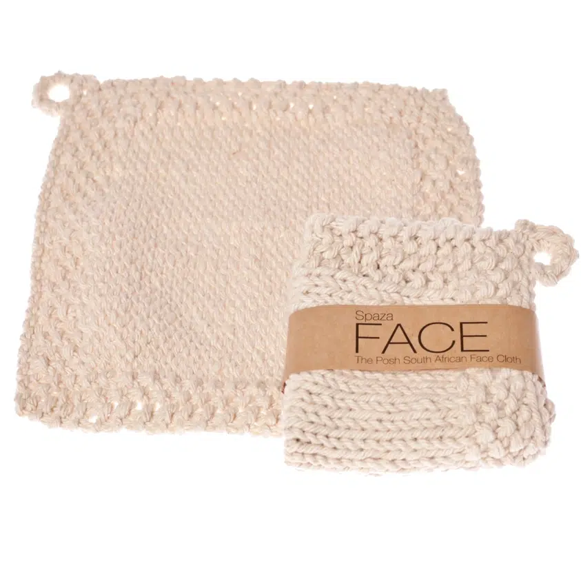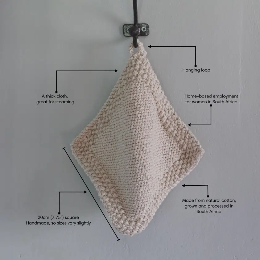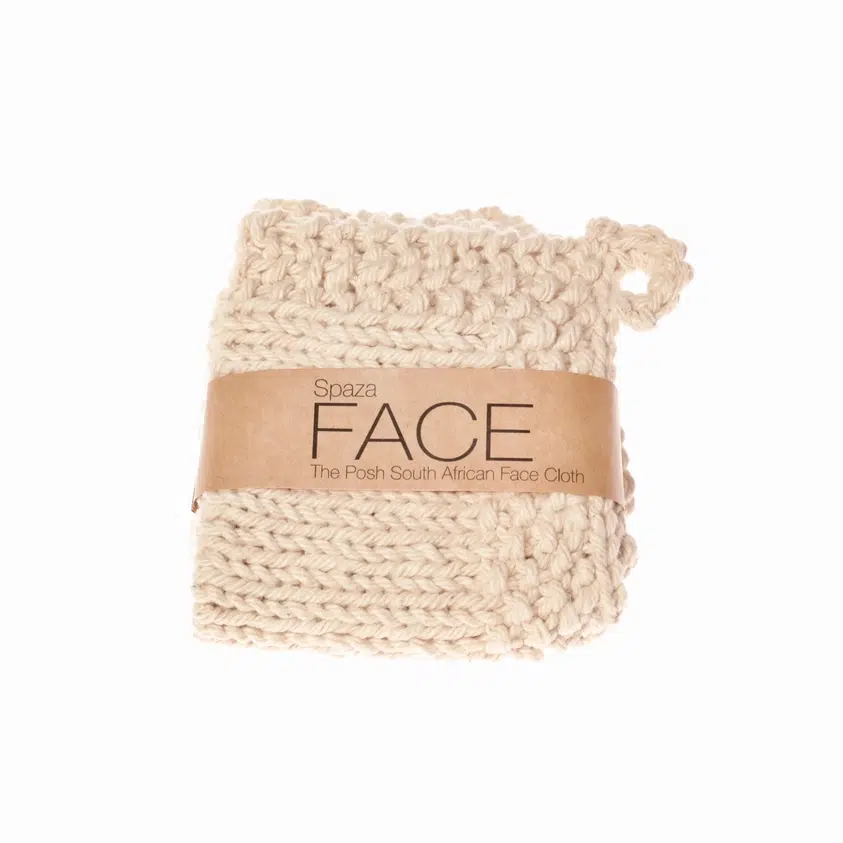 Ansiktsklut i ren bomull, håndstrikket av i Sør-Afrika av Spaza.